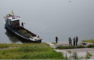 图为1小组拍摄长江清漂队现场
