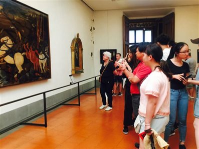 8月17日,写生实习小组来到了著名的乌菲齐美术馆,馆内收藏了文艺复兴时期各画派代表人物的作品。这座建筑的前身是热爱和保护文化艺术的美第奇家族银行。小组成员漫步其间,由马老师向大家详细赏析了波提切利的《春》、提香的《乌尔比诺的维纳斯》以及文艺复兴三杰的代表作。各大名家风格迥异,诠释着不同的艺术之美。