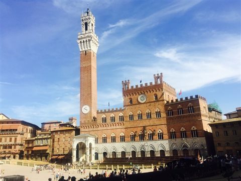 午后,写生实习小组驾车前往锡耶纳,这座古城最大限度的保留了一股中世纪风情。被誉为“贝壳状的圣——雅克”的甘波广场是城市的中心,它的设计真正的影响了中世纪的建筑和城市规划。小组成员们陶醉在这座被托斯卡纳的乡村环抱着的中世纪古城中,感受它如油画般厚重沉静的美。