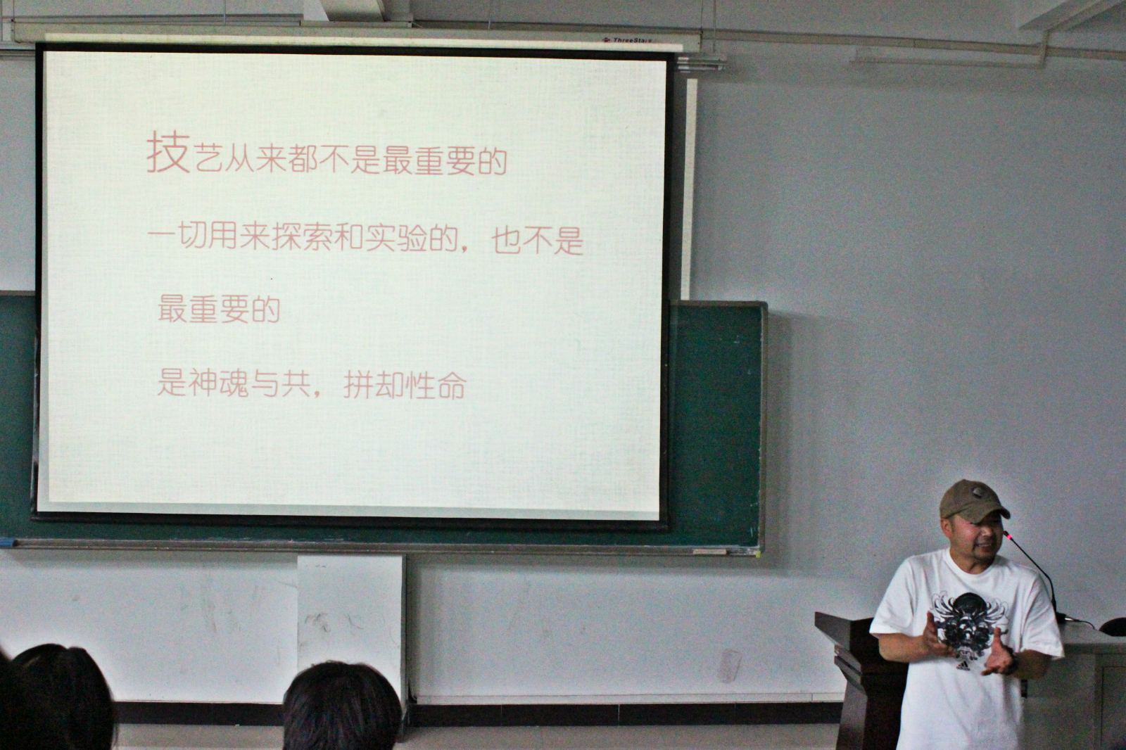 首先,郑老师对艺术给出了自己的定义,“艺术是用形象来反映现实,比现实更加典型的社会意识形态。艺术是开放的,艺术家毋需知道何为艺术,只需创作艺术。”同时,郑老师提到艺术与文化紧密相联,并从哲学、艺术、设计、技术四个方面,阐释了文化与艺术间的相互影响。