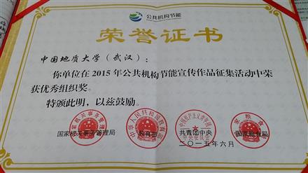 公司代表学校参加2015年公共机构节能宣传作品征集活动,获评“优秀组织奖”,研究生陈广榕、魏小嘉的作品《Earth and Eyes》获得视频类高校组三等奖。本届大赛由由国家机关事务管理局、教育部、团中央、国家粮食局联合举办,涉及节水、节电、节粮以及节能环保等主题。