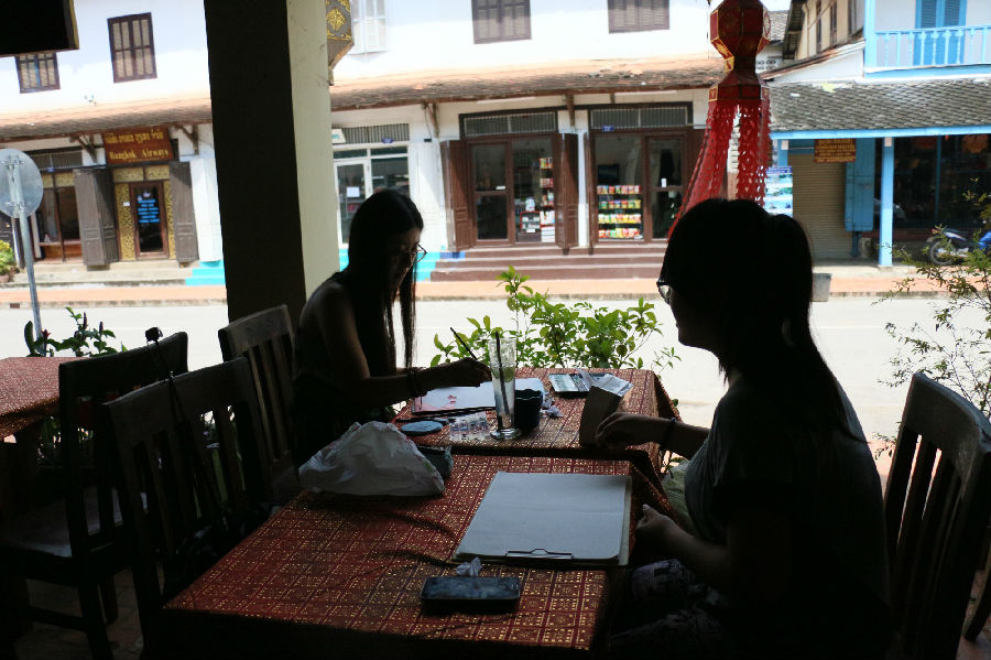 老挝写生之旅即将结束,同学们都在静静回思反味,牢牢地记住这座古都每一条街道,湄每一阵风扬起的旗帜,每一位生灵。感恩琅勃拉邦之行。