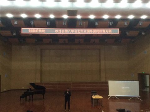 (记者卢晓娜)5月30日下午,台湾艺术大学的钟耀光教授在公司音乐厅举办题为“创意的传统——以过去八年台北市立国乐团的经营为例”的讲座并与现场师生进行互动交流。