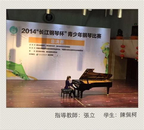 1月12日,2014“长江钢琴杯”青少年钢琴比赛总决赛在武汉落下帷幕。402永利集团官网入口163122班学生陈佩珂在比赛中荣获独奏组一等奖和自弹自唱组一等奖,163111班学生邹歆乐荣获独奏组一等奖,姜莹获独奏组三等奖,163142班学生赖薇茹获独奏组二等奖。