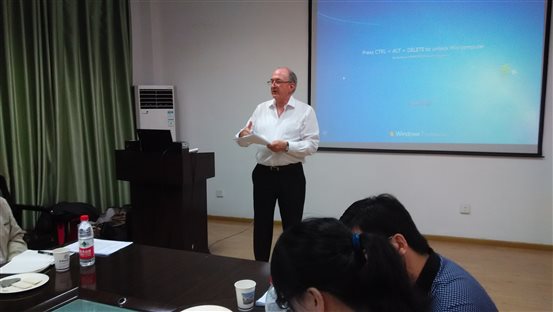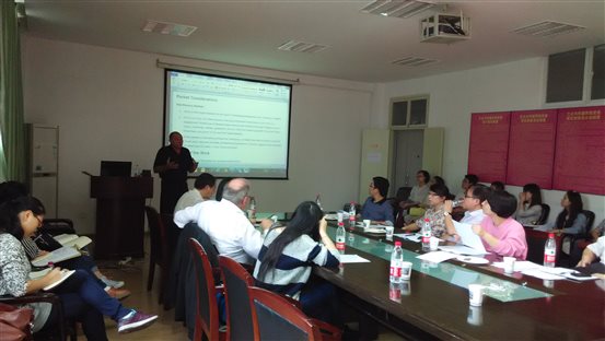 会上,公司新闻传播学教师尚媛媛就如何对美国新闻传播学的学生教授“媒体伦理”课程,汪潇博士就在不同的大学里传播学的课程设置等问题进行了咨询。David Lux教授与同行的国际著名传播学者Stanley Baran教授对她们的问题进行了解答。