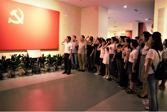 公司全体教职工党员在展厅重温入党誓词