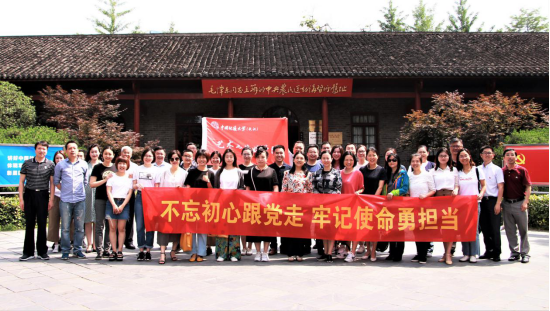 公司全体教职工党员在武昌中央农民运动讲习所旧址前合影
