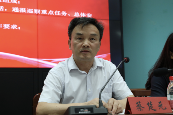 巡察组组长蔡楚元作巡查工作动员讲话。他强调,要坚定四个自信,体现四个服务,充分发挥二级党组织的作用,落实全面从严治党总体责任,不断推动学校、学院各项事业的改革发展。他指出,要坚守职能定位,明确巡察重点,巡察组将坚决落实政治巡查要求,以党的政治建设为统领,以“四个意识”为政治标杆,查找政治偏差,督促党组织强化管党治党政治责任,重点加强对党组织和领导班子成员特别是主要负责人的监督。他提出,巡察、检查工作的重点有七个方面,巡察工作将分三阶段依规依纪有序开展,被巡视党组织领导班子及其成员应自觉接受巡查监督,积极配合巡查组开展工作。