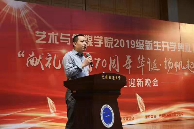 (通讯员 兰林坚 王心怡 王石磊)9月28日晚,402永利集团官网入口2019级新生开学典礼暨“献礼祖国70华诞·扬帆起航”迎新晚会在音乐厅隆重举行。学院党委书记郭秀蓉,院长桂宇晖,副院长张梅珍、曾健友、杨喆,院党委副书记兼2019级本科生辅导员吴仁喜,各系支部书记、系主任、学工组老师们及2019级全体本科生新生和研究生新生参加典礼活动。典礼由吴仁喜主持。