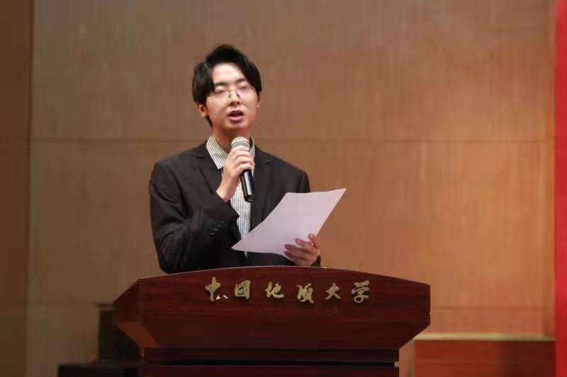 新生代表、音乐学2019级本科生王灶格满怀激情地讲述了自己从三晋大地来到江城武汉所感到的新奇以及自身对大学生活的憧憬与期待,代表全体新生发表了属于每个人的“青春宣言”。