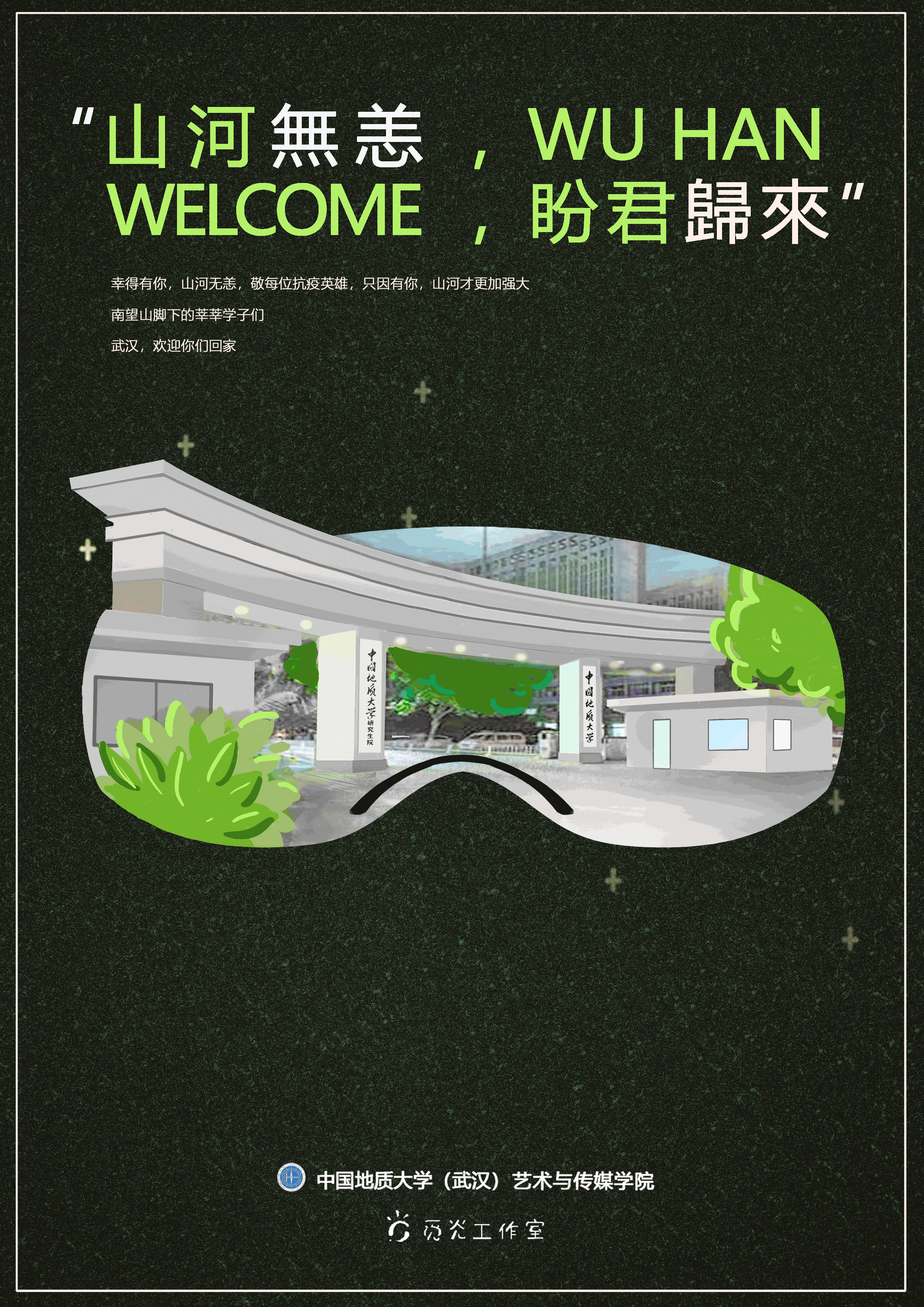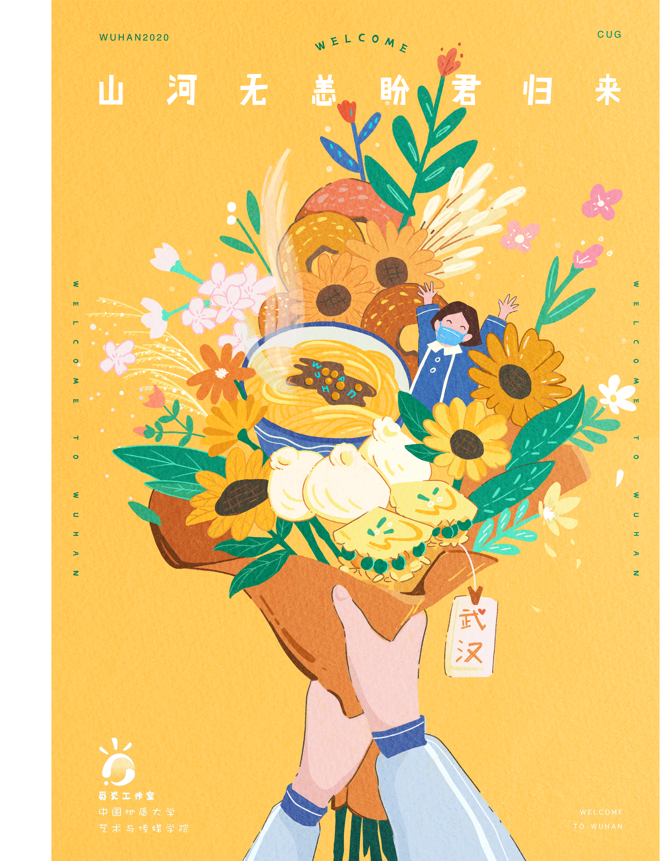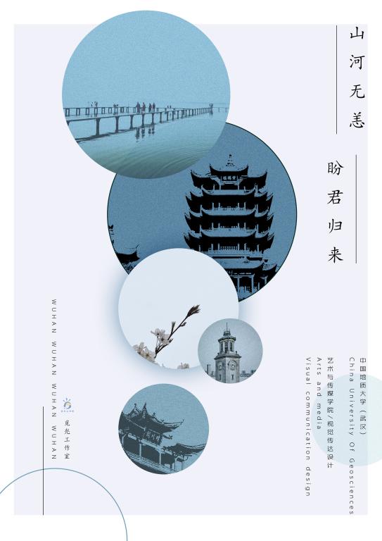 如今,武汉重启,我们即将回到校园,在这个令人激动的时刻,由402永利集团官网入口视觉传达专业徐莉觅灮工作室,以“山河无恙,盼君归来”为主题,设计了系列海报作品,欢迎莘莘学子重回武汉。