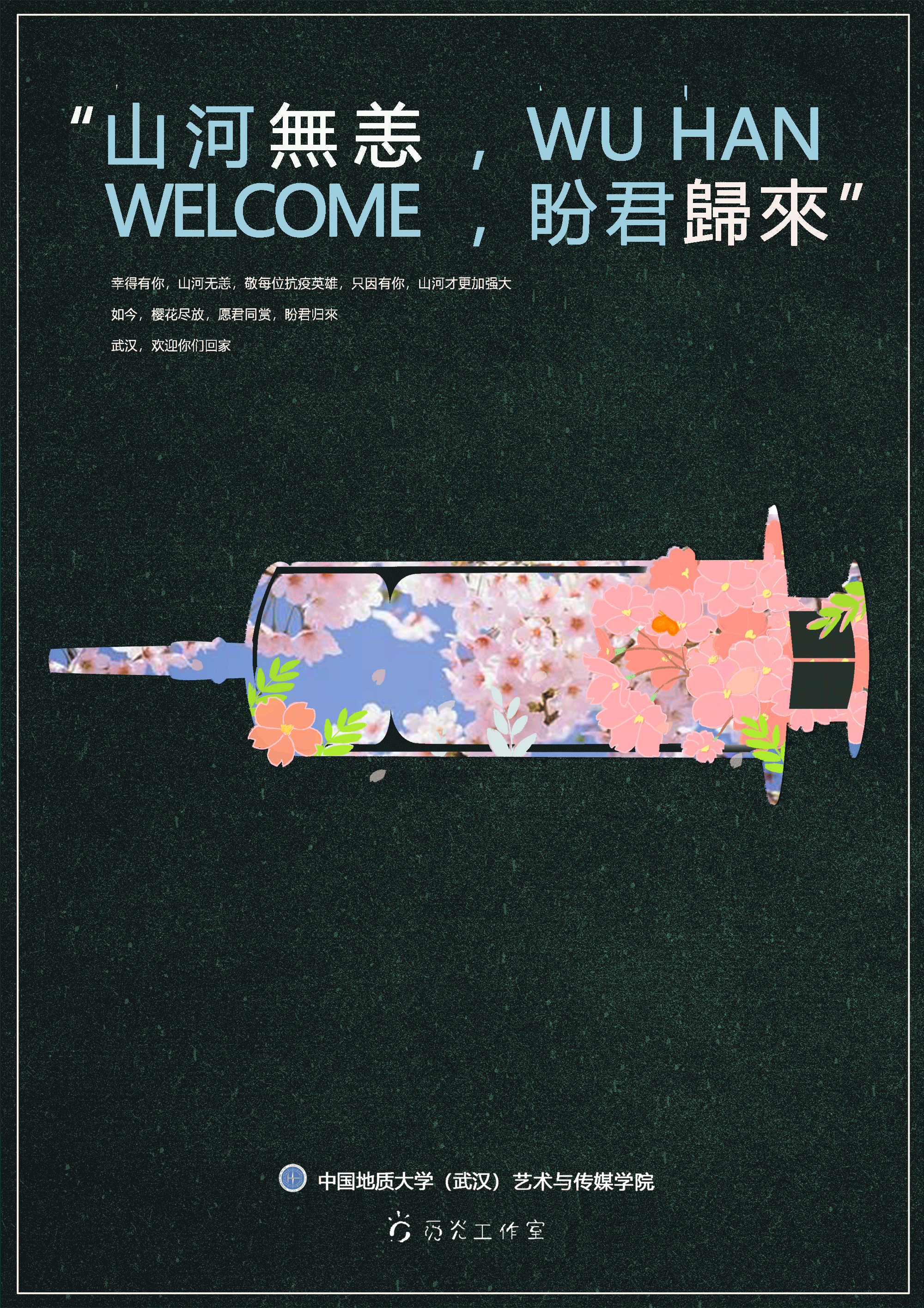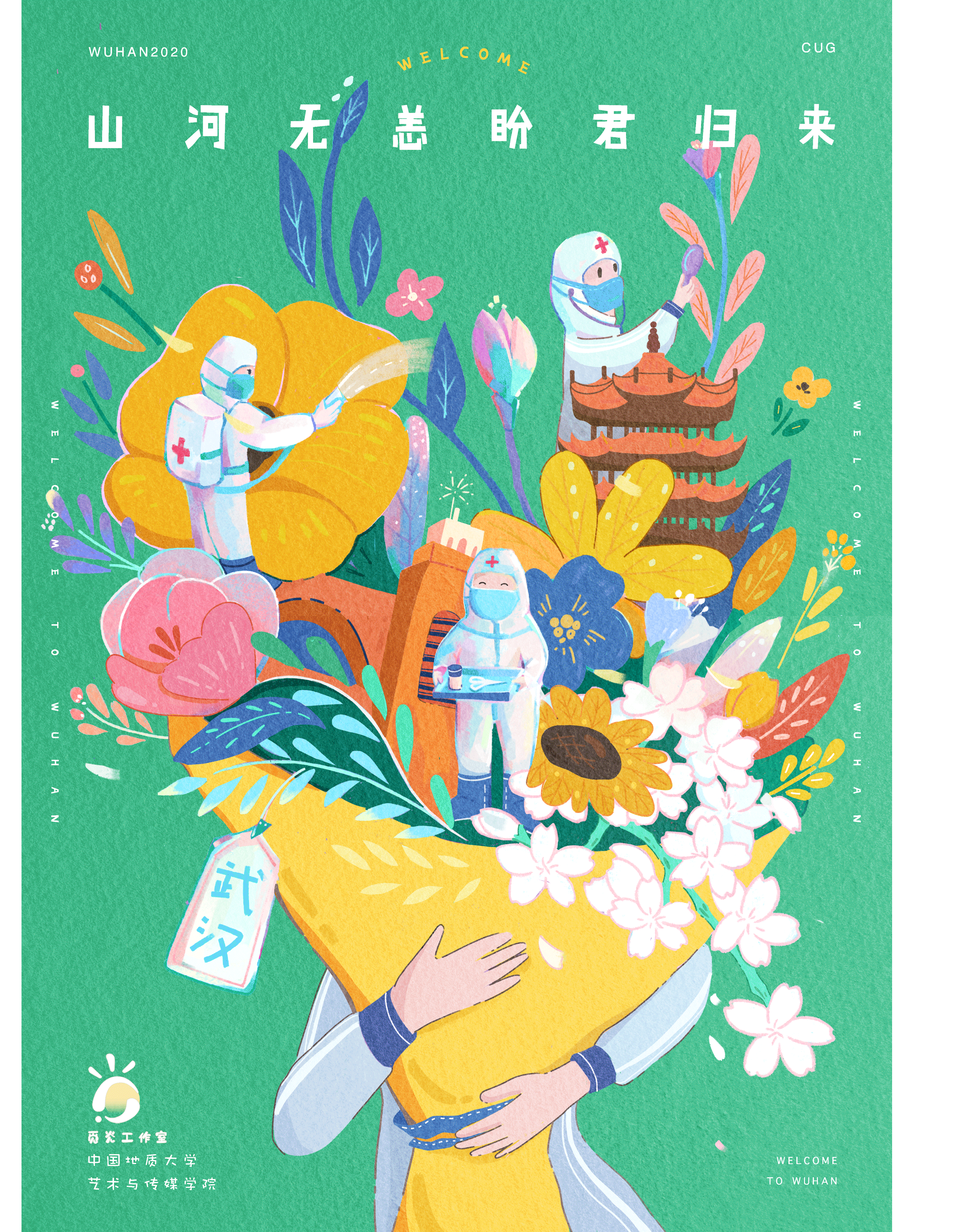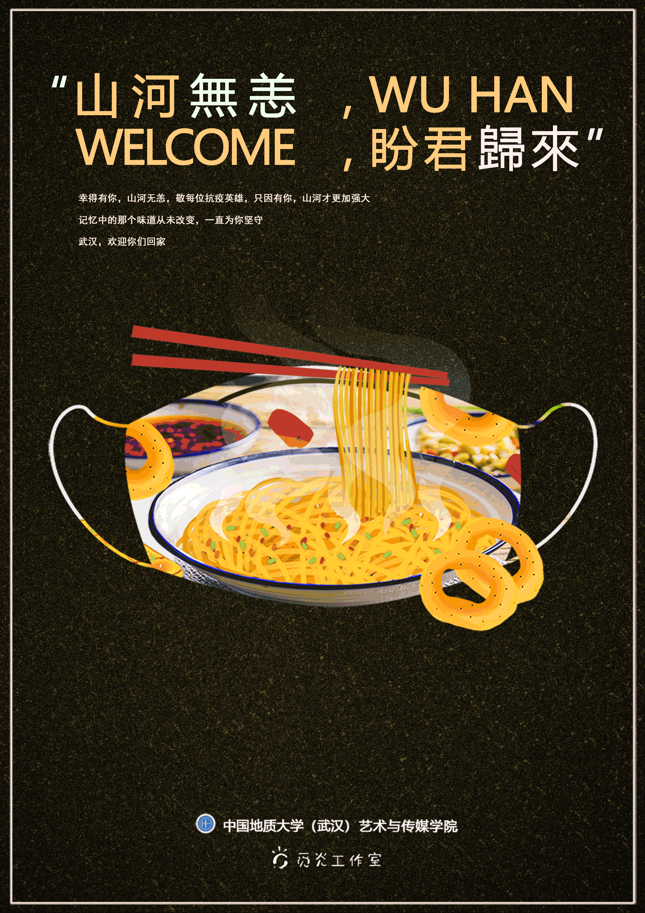 如今,武汉重启,我们即将回到校园,在这个令人激动的时刻,由402永利集团官网入口视觉传达专业徐莉觅灮工作室,以“山河无恙,盼君归来”为主题,设计了系列海报作品,欢迎莘莘学子重回武汉。