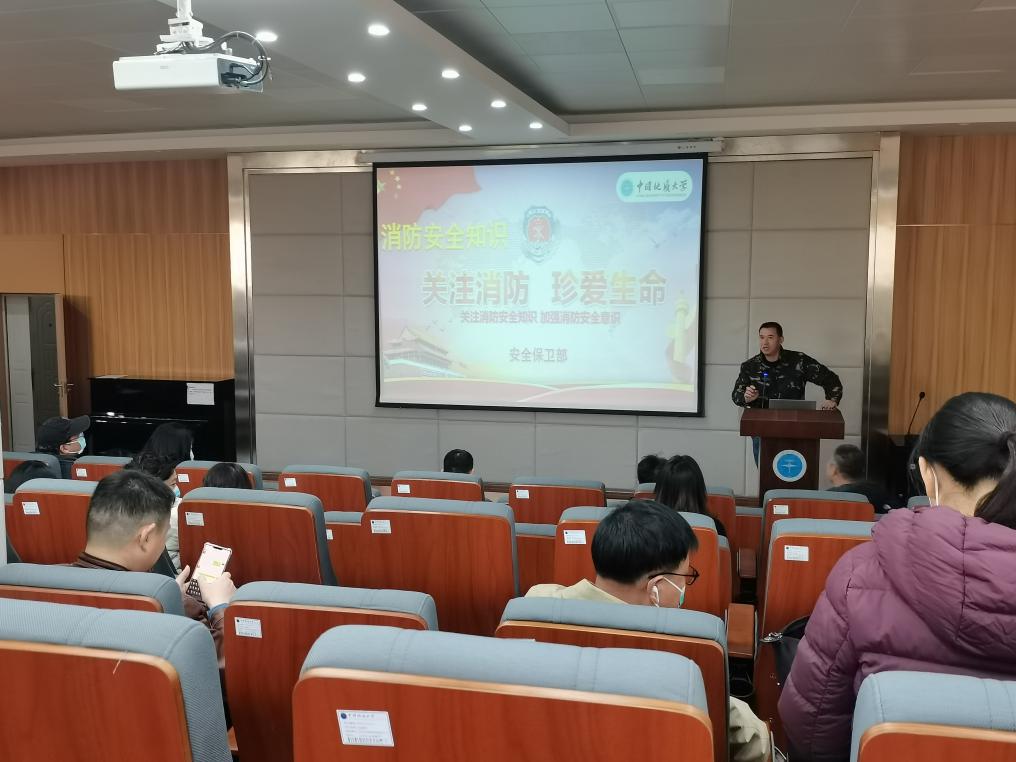 大会开始,首先由学校安全保卫部消防科科长刘从贵面向公司全体教职工展开主题为“关注消防,珍爱生命”的消防安全知识培训,刘科长为大家详细介绍了发生火灾造成的严重后果,例如一场火灾中仅仅燃烧40秒就可以将一间住房烧成灰烬,之后也举了很多生动的案例强调了掌握灭火器使用技巧的重要性和必要性。