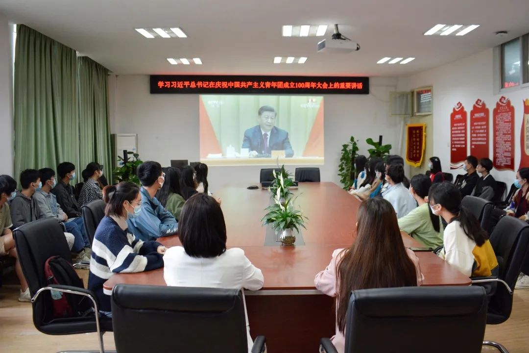 2022年5月10日上午,庆祝中国共产主义青年团成立100周年大会在人民大会堂隆重举行。中共中央总书记、国家主席、中央军委主席习近平出席大会并发表重要讲话。402永利集团官网入口党委书记郭秀蓉、党委副书记边建华、辅导员陈习良、辅导员曾戈晖、兼职辅导员、学生会、研究生会、党建办学生骨干共同在艺媒楼1209会议室观看庆祝中国共产主义青年团成立100周年大会直播。