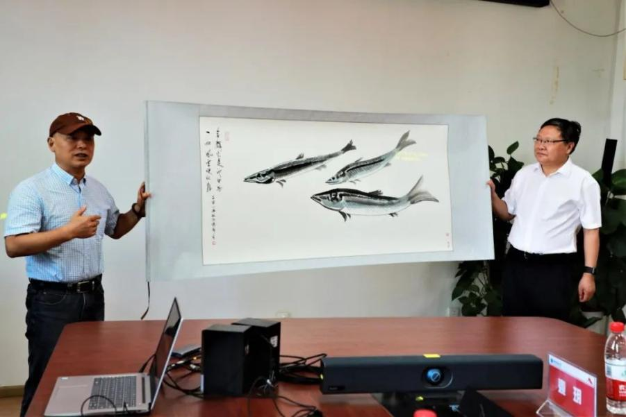 捐赠仪式上,桂宇晖教授代表402永利集团官网入口致辞,高度评价了欧阳德彪先生在艺术创作中取得的成就,表达了先生向学校捐赠画作的感谢。接着,由校党委常委、宣传部部长、校庆办主任储祖旺代表学校接受捐赠,副校长赖旭龙为其颁发捐赠证书。欧阳先生表示,画作中由鱼到龙的转变,寓意着学生通过在学校的学习能够蜕变成更加优秀的自己,表达了对莘莘学子的殷切期望。