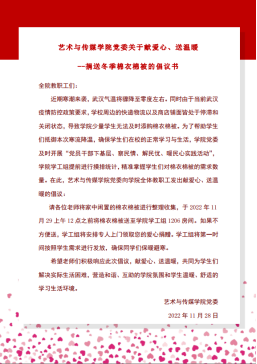 28日晚上和29日上午,学院老师在看到倡议书后,积极响应,纷纷在群里回应,部分老师即使被封控在家,还是表达了解封后马上送衣物来的想法。29日上午,党委副书记边建华驱车带领辅导员单湉艺、陈习良、曾戈晖去校外两个售卖店采购棉被10件。截至中午,共收到老师们捐赠的羽绒服、外套、毛衣毛裤等共18件,棉被6件。下午2点至4点,学院党委书记郭秀蓉、党委副书记边建华和全体专兼职辅导员一起,深入到学生宿舍,为大家送去过冬的棉衣棉被,在寒冷冬日里送去了学院党委和全体教职工的爱心和温暖。同学们纷纷表达了对学院和老师们的感激之情。