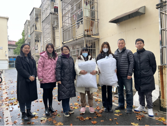 近期寒潮来袭,武汉气温将骤降至零度左右。为深入掌握学生思想动态、了解学生学习和生活中存在的困难,学院党委按照党员干部“下基层、察民情、解民忧、暖民心”工作要求,党委书记郭秀蓉带队,党委副书记边建华以及学工组全体专兼职辅导员在11月28日晚走访全体学生宿舍,走访过程中有部分同学反映:由于当前武汉疫情防控政策要求,学校周边的快递物流以及商店铺面皆处于停滞和关闭状态,导致他们无法及时收到家中寄来的和网上购买的棉衣棉被。了解到同学们的实际困难后,学工组及时进行摸排统计,精准掌握同学们对棉衣棉被的需求数量。学院党委第一时间面向全体教职工发出献爱心、送温暖的倡议,动员老师们将家中闲置的棉衣棉被进行整理收集,捐送给同学们用以保暖避寒。