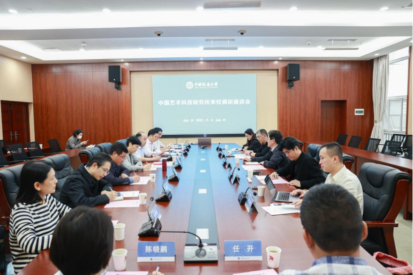 庹祖海主任一行在校党委书记黄晓玫的陪同下听取了何清俊院长对公司艺术设计类学科建设情况和艺术科技的研究进展的介绍。