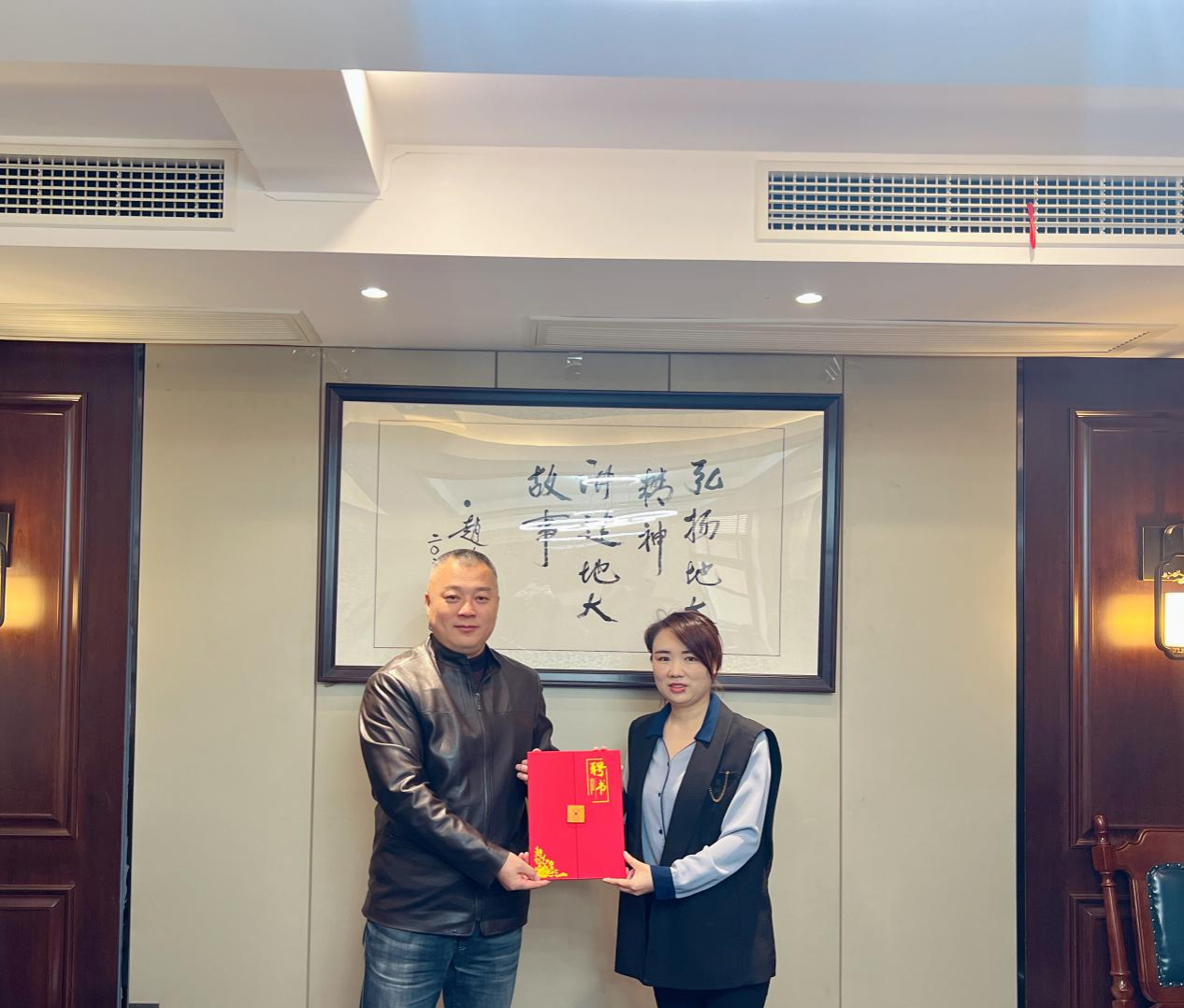 (晋曦与周红桥共同为艺媒学院湖南校友之家揭牌)