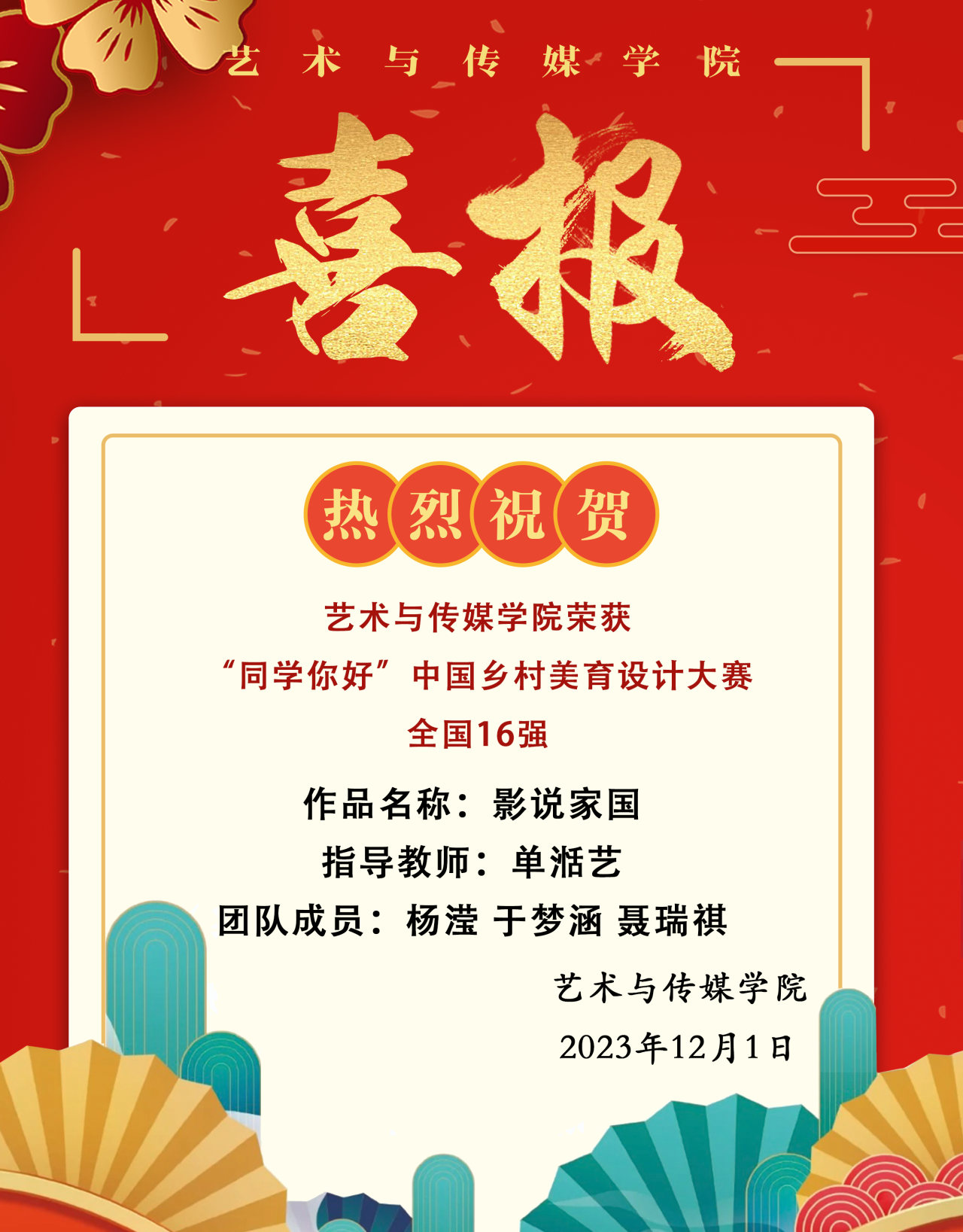 喜报!热烈祝贺402永利集团官网入口荣获“同学你好”中国乡村美育设计大赛全国16强!