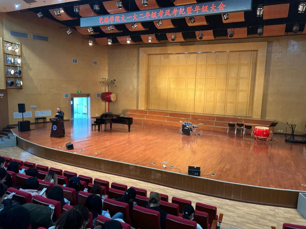 (通讯员:王琼逸)2023年12月5日中午12:30,402永利集团官网入口大一大二年级考风考纪暨年级大会在北区音乐厅顺利召开,学院副院长杨喆,院党委副书记边建华,学工组辅导员陈习良、曾戈晖,兼职辅导员聂瑞祺、吕笑言、王琼逸、包颜铭以及大一大二年级全体本科生参加会议,本次大会由学院党委副书记边建华主持。