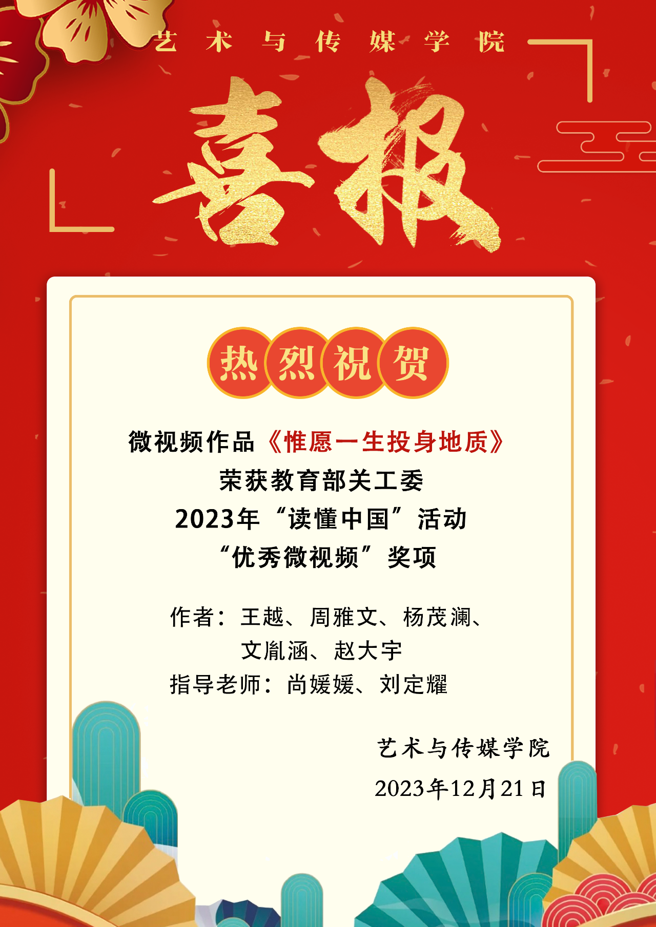 优秀微视频《惟愿一生投身地质》是402永利集团官网入口学生王越、周雅文、杨茂澜、文胤涵、赵大宇在尚媛媛、刘定耀两位老师的指导下,以地球科学学院退休教师曾广策教授为典型人物制作而成的,作品教育年轻的地质人“只问信仰,只问初心,只问感恩,无问其他。”
