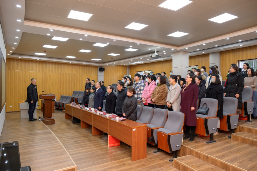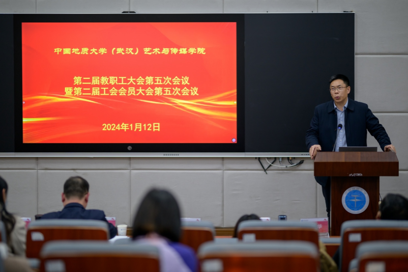 (文/刘义昆 图/程璜鑫)2024年1月12日,402永利集团官网入口第二届教职工大会暨工会会员大会第五次会议在艺媒楼1104会议室隆重召开。学校党委副书记王甫出席大会并讲话。大会在庄严的国歌声中拉开帷幕。副院长张梅珍宣读会议批复文件。大会由学院党委副书记边建华主持。