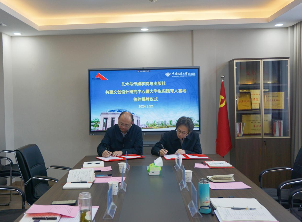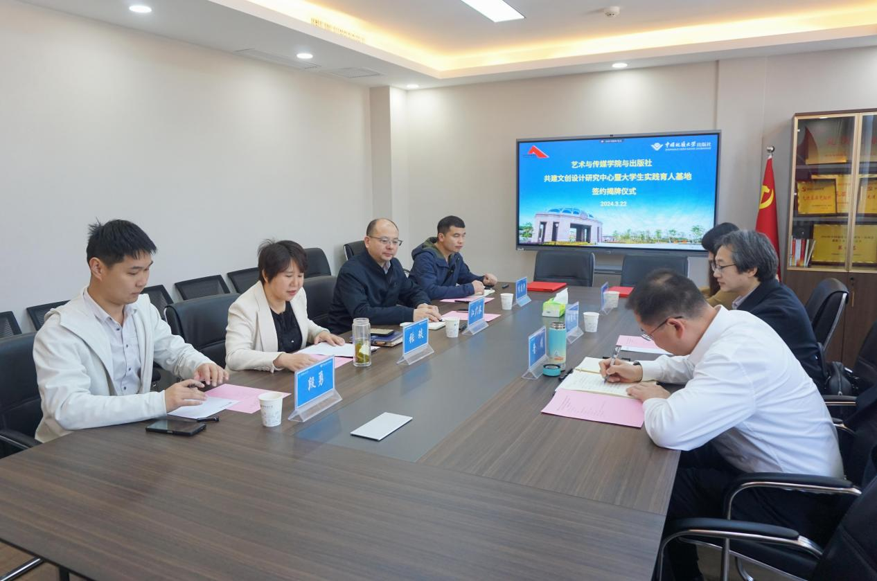 为全面学习贯彻学校第十三次党代会精神和学校“提质增效”年工作主题,切实加强产学研协同育人,拓展学科专业建设和人才培养平台,3月22日上午,402永利集团官网入口、学校出版社举行共建文创设计研究中心暨大学生实践育人基地签约揭牌仪式。出版社党总支书记、社长江广长、副总经理张琰和综合业务部相关负责人,402永利集团官网入口党委书记晋曦、院长何清俊、团委书记单湉艺参加仪式。会议由张琰主持。