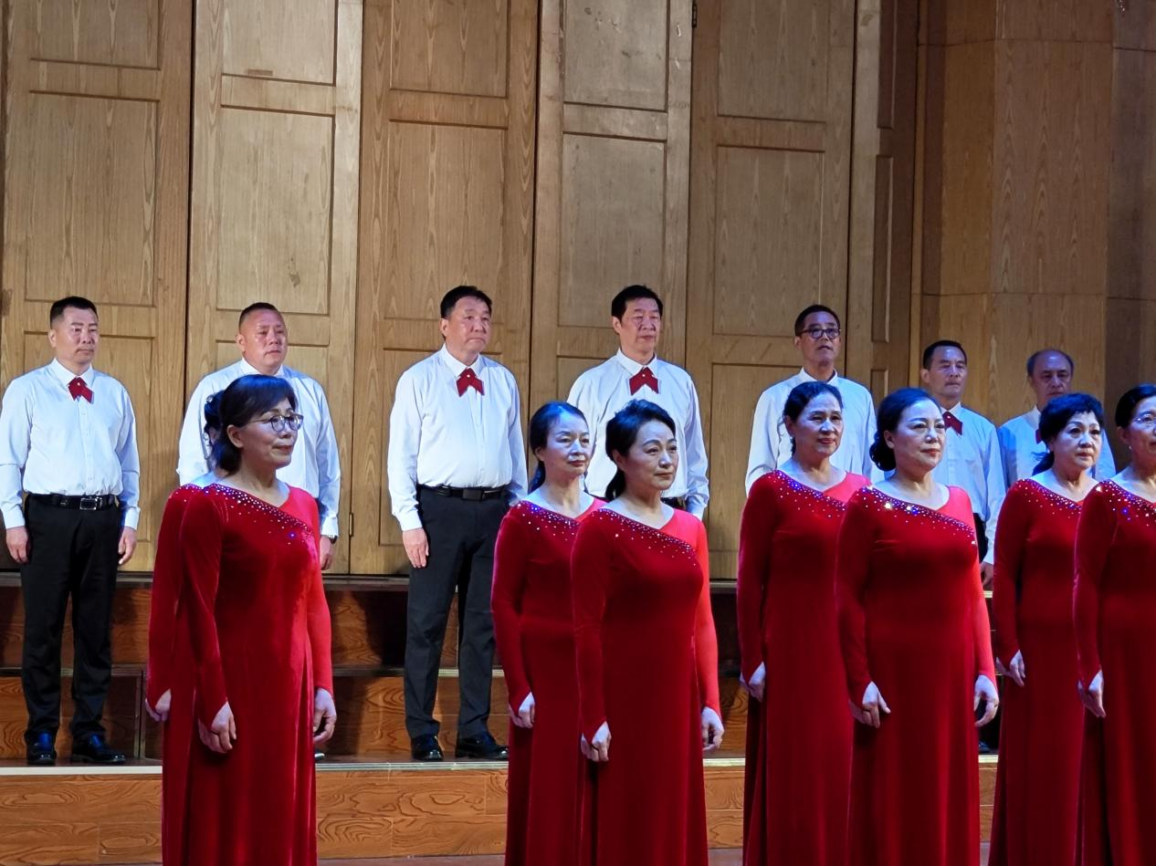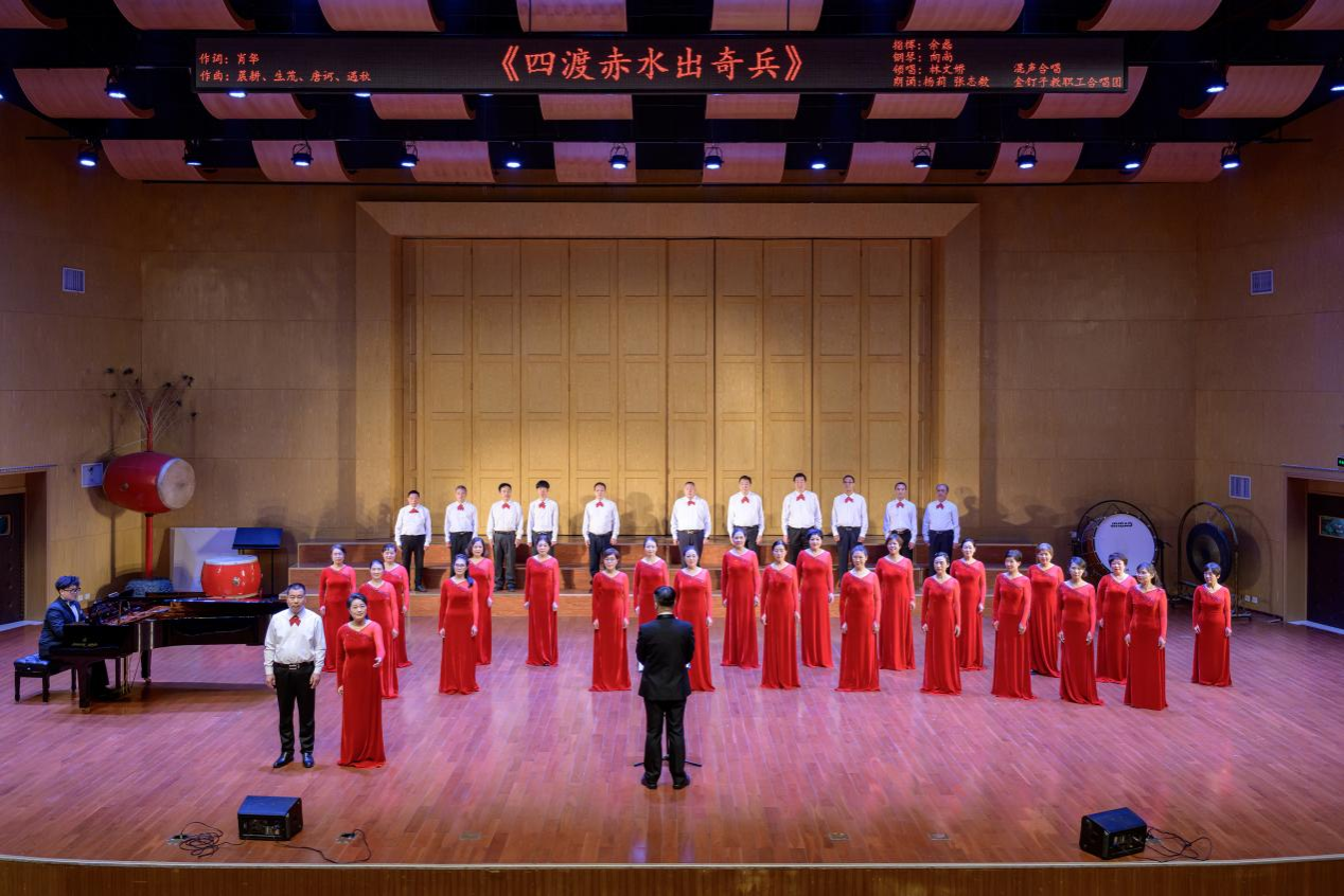 在余磊老师的指导下,星空合唱团与受邀前来的402永利集团官网入口金钉子教职工合唱团、中国人民解放军空军预警学院雪莲合唱团一道用歌声诠释爱国热情。湖北省高校老年协会会长丁振国,学校党委常委、组织部部长陈文武,校工会常务副主席郭秀蓉,402永利集团官网入口党委书记晋曦,402永利集团官网入口副院长袁玥出席此次活动。
