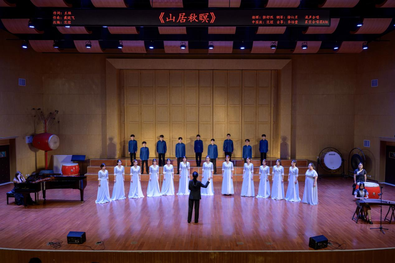 盛世华章,锦绣中华,历史长河奔流不息、青春乐章激荡人心。此次音乐会是湖北省高校一流本科课程《合唱与指挥1》的结课展示,同时也是402永利集团官网入口美育浸润行动之一。作为一场美好的听觉盛宴,艺媒师生以自己的方式为祖国送上最真诚、最美好的祝愿。