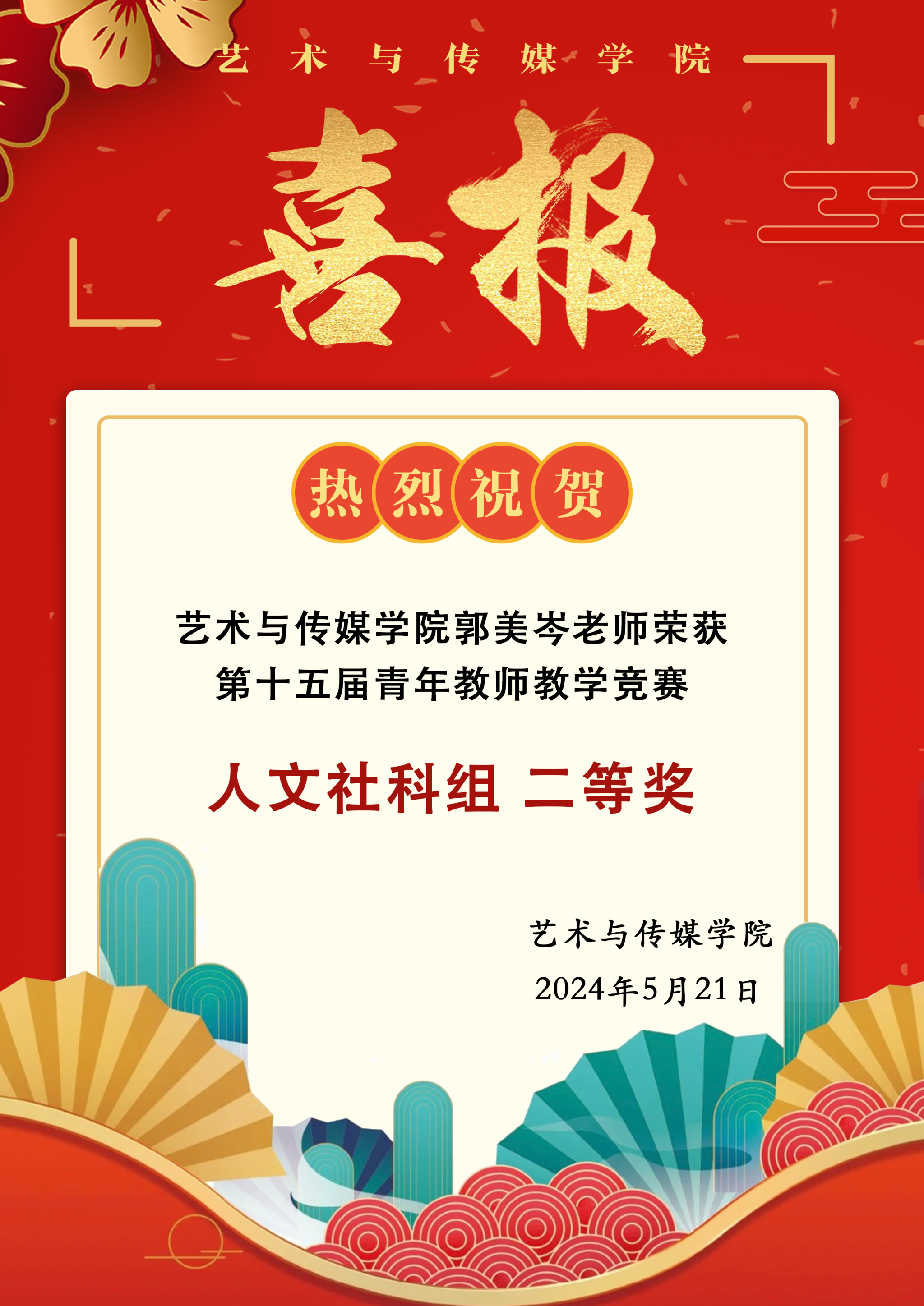 喜报|热烈祝贺公司郭美岑老师在第十五届青年教师教学竞赛中荣获人文社科组二等奖!