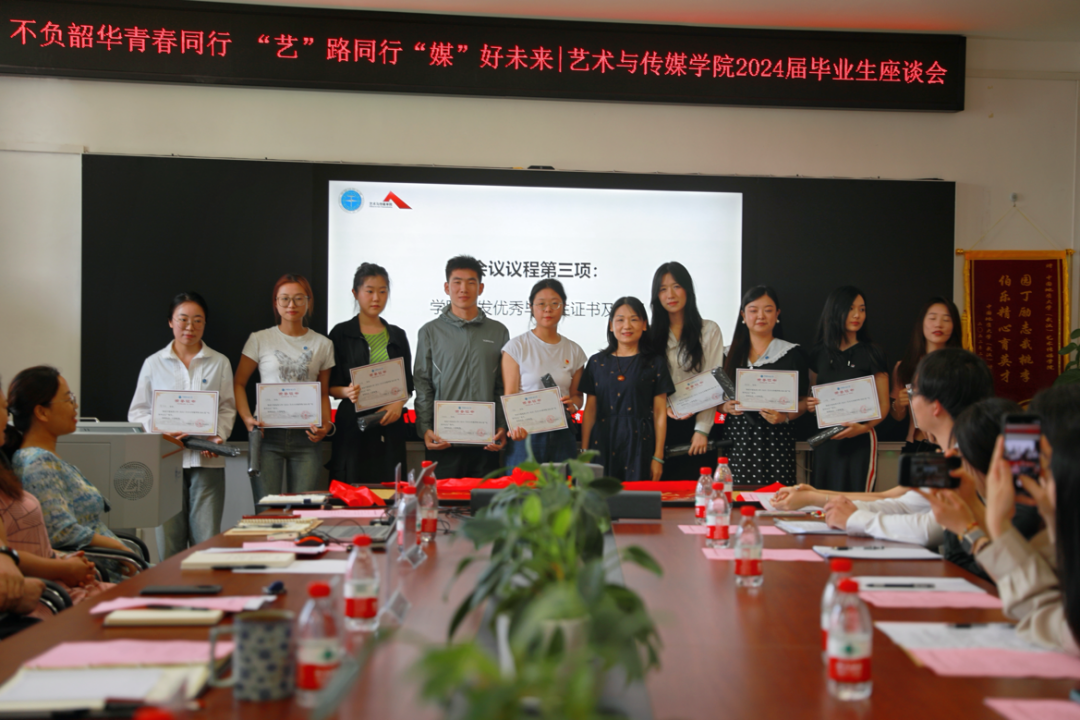 2024年6月13日上午10:45,402永利集团官网入口在1209会议室召开“艺路同行、媒好未来”2024届毕业生座谈会暨院领导接待日。会议由党委副书记边建华主持,学院党委书记晋曦、副院长张梅珍、副院长杨喆、各系系主任和支部书记、学工组专兼职辅导员、本科生优秀毕业生及研究生优秀毕业生参加会议。