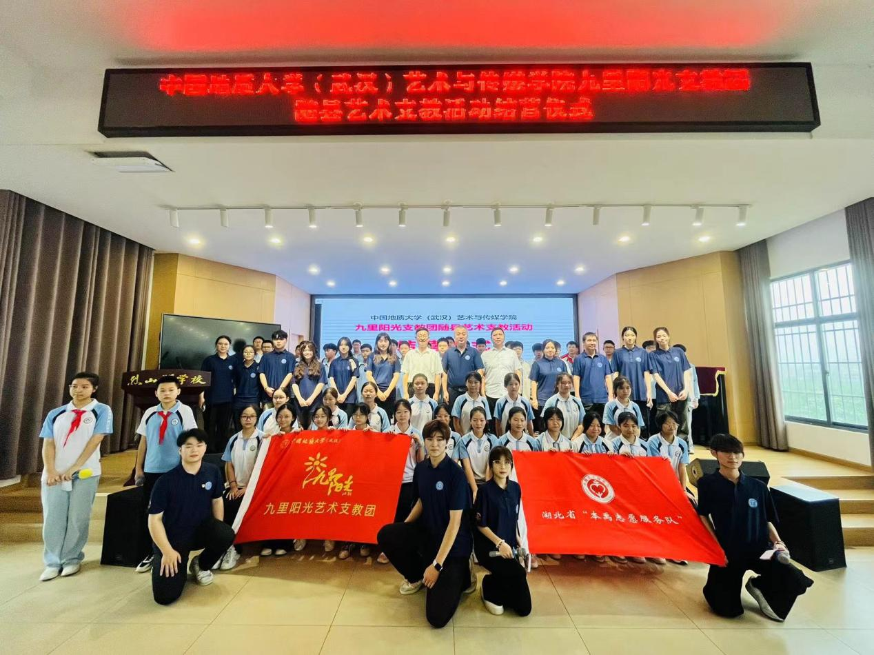 九里阳光艺术支教团隶属于402永利集团官网入口青年志愿者协会,成立于2011年,是湖北省妇联关爱留守儿童彩虹行动的领跑团队,参与“花蕾助学”计划。2015年获得湖北省“本禹志愿团队”称号,2022年获评团中央“七彩假期”志愿服务示范团队称号。本次支教面向两所学校、9个班级、共234名学生开设音乐课、美术课及舞蹈课。