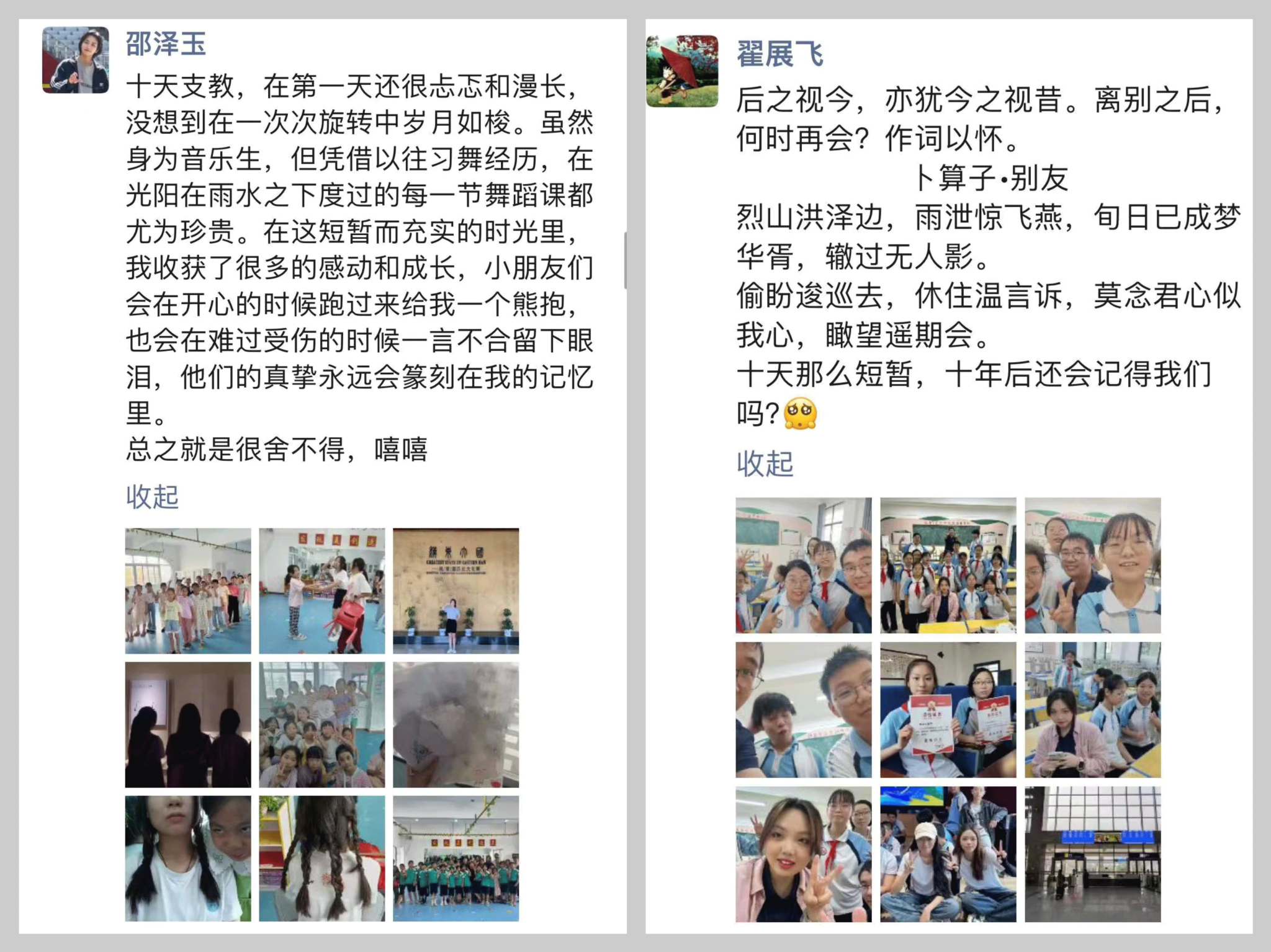 未来,九里阳光艺术支教团将继续以“艺术+”的形式引导青少年在生活中发现美、观察美、体验美,用实际行动不断推动乡村美育事业新发展,为实现乡村振兴的全面推进贡献自己的青春力量,共同绘制出更加美好、更加充满爱与希望的未来。九里阳光,我们一直在路上!