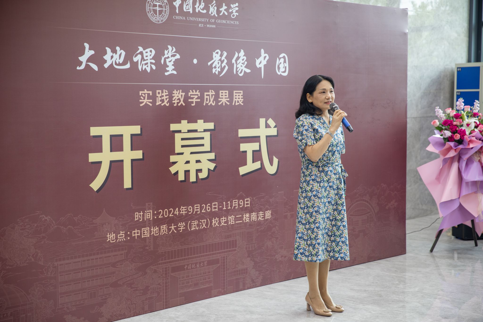 晋曦代表学院讲话。他说,重视实践教学是地大的优良传统,对于人文艺术专业师生而言就是要“把作品创作在祖国的大地上”。广电专业开办20年来,师生牢记弘扬主旋律初心、担当传播正能量使命,脚踏祖国大地、记录时代变迁,此次成果展,便是二十载奋斗时光的缩影。这些年来,广电师生爬过江西庐山,到过湖北巴东,再到今年初登安徽天柱山,变化的是实习地点,不变的是坚持把国情教育融入实践教学,把思政元素贯穿实习全程,让一次次教学实习成为触摸美丽中国和体悟当代中国的心灵之旅。他表示,学院将不断拓展实践育人和网络育人的空间和阵地,把实践教学成果更多、更好地转化为育人资源,为学校“五育并举”、立德树人贡献艺媒力量。