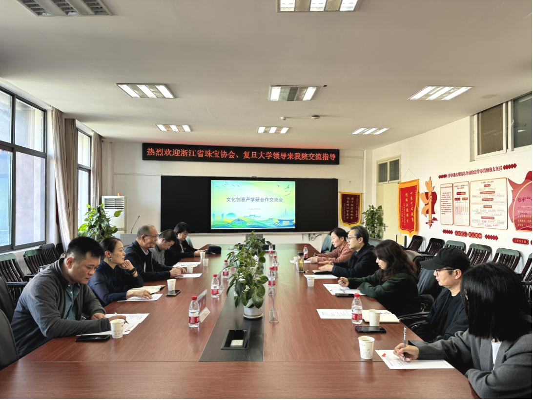 (文稿/摄影:万梓晗)10月25日下午,浙江省珠宝协会副会长、袁嘉琪美术馆董事长、贞观堂艺术品有限公司董事郑良,复旦大学证券研究所及复旦大学数据产业研究中心研究员经轶,武汉轻工大学艺术设计学院教授黄俊,华铭建筑设计研究院湖北设计分院总经理董俊一行来院开展文化创意产学研合作交流。学院院长何清俊、副院长杨喆、副院长彭静、视觉与媒体设计系主任狄丞、环境设计系党支部书记程璜鑫参加座谈会,院长何清俊主持会议。