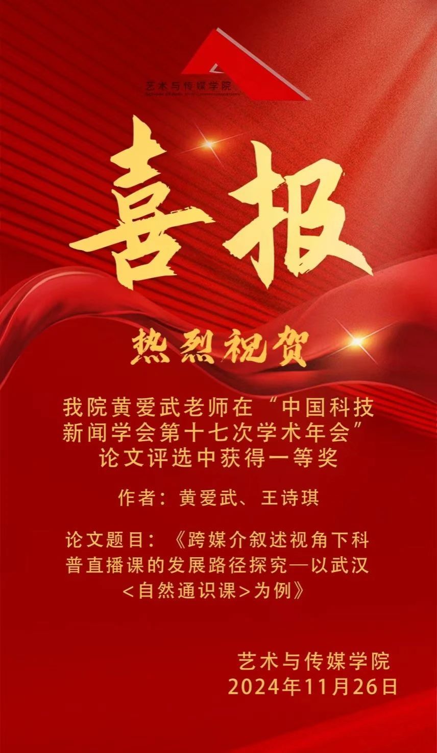 喜报 | 热烈祝贺公司黄爱武老师在“中国科技新闻学会第十七次学术年会”论文评选中获得一等奖