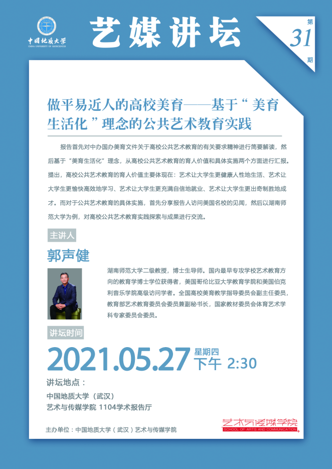 [2021年5月27日]艺媒讲坛(31期):湖南师范大学郭声健教授讲座