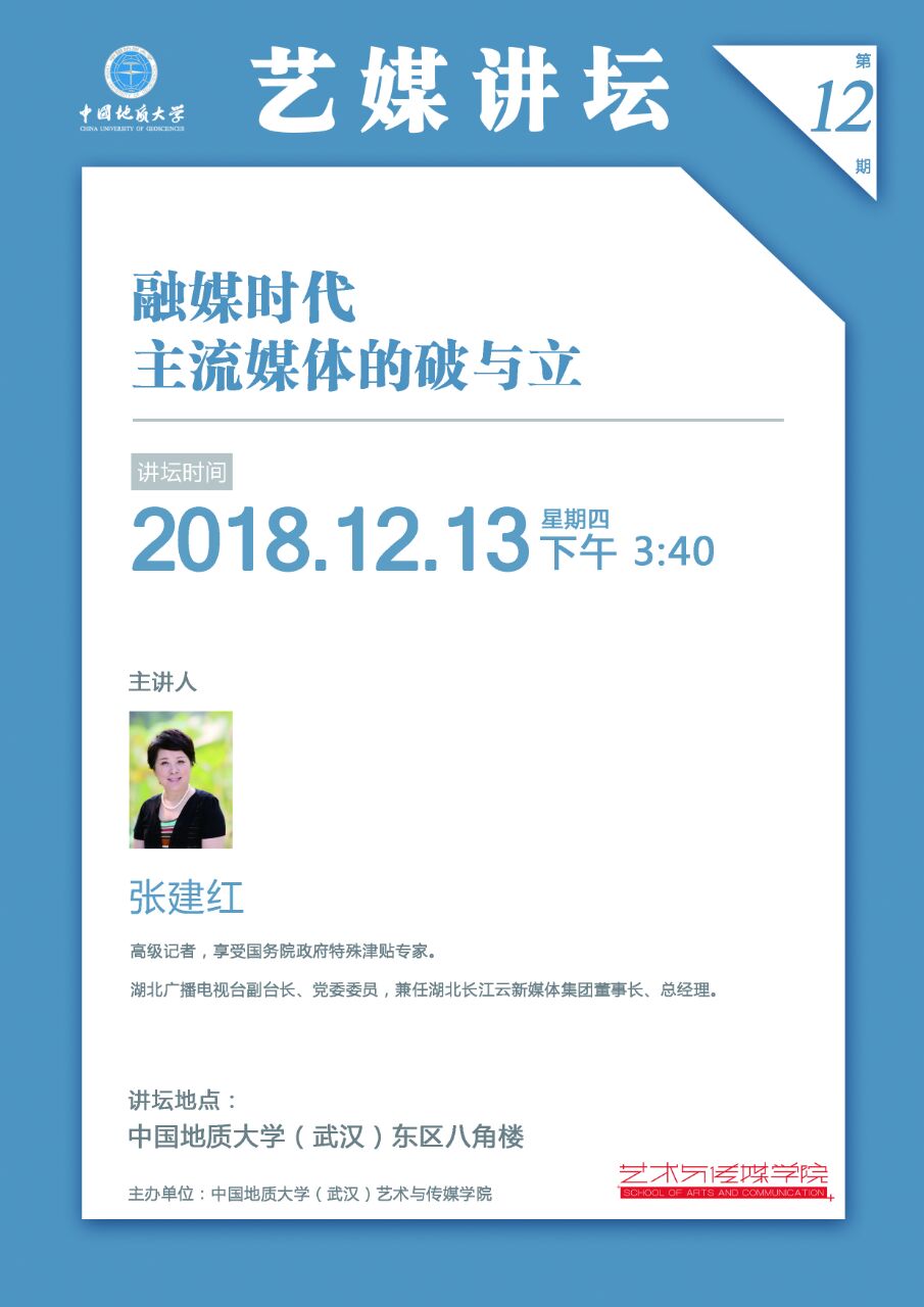 [2018年12月13日]艺媒讲坛(12期):湖北广播电视台副台长张建红学术报告会