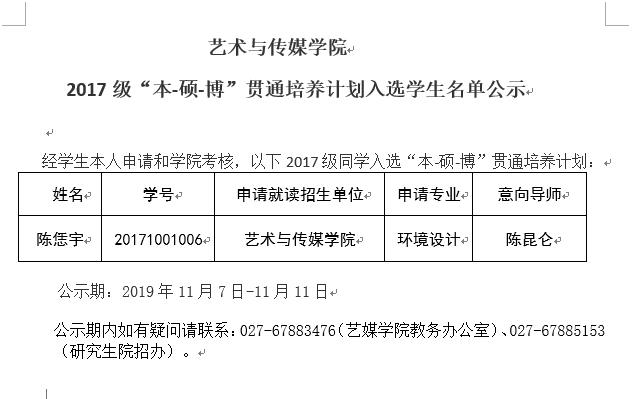402永利集团官网入口2017级“本-硕-博”贯通培养计划入选学生名单公示