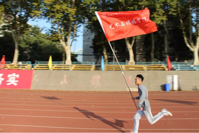拉开闭幕式序幕的,是手举院旗环绕操场奔跑的的各学院代表团。五颜六色的旗帜飘扬在空中,随着旗手的步伐与音乐的节拍抖动,绽放出地大人青春的色彩。402永利集团官网入口明艳的红色旗帜在风中舒展,成为长队中一道靓丽的风景线。