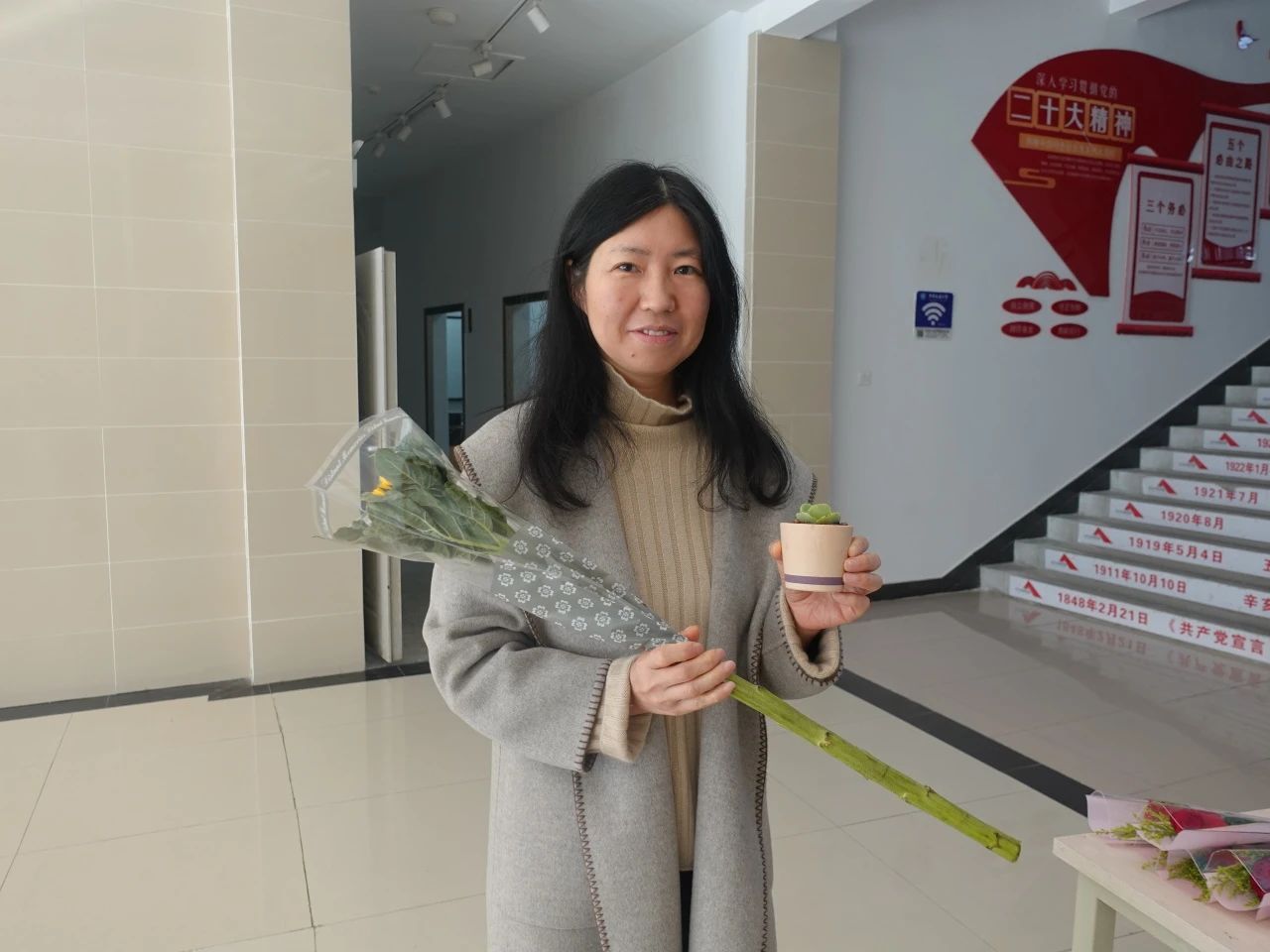 阳春三月,微风和煦。为庆祝第114个“三八”国际妇女节,2024年3月8日下午,402永利集团官网入口学生会和研究生会举办献花活动。用花束为全院女性师生同胞们送上最真挚的节日祝福,以花爱己,以花悦己,在忙碌的生活中进行简单的放松,在温暖美好的时光中回归心灵之美。