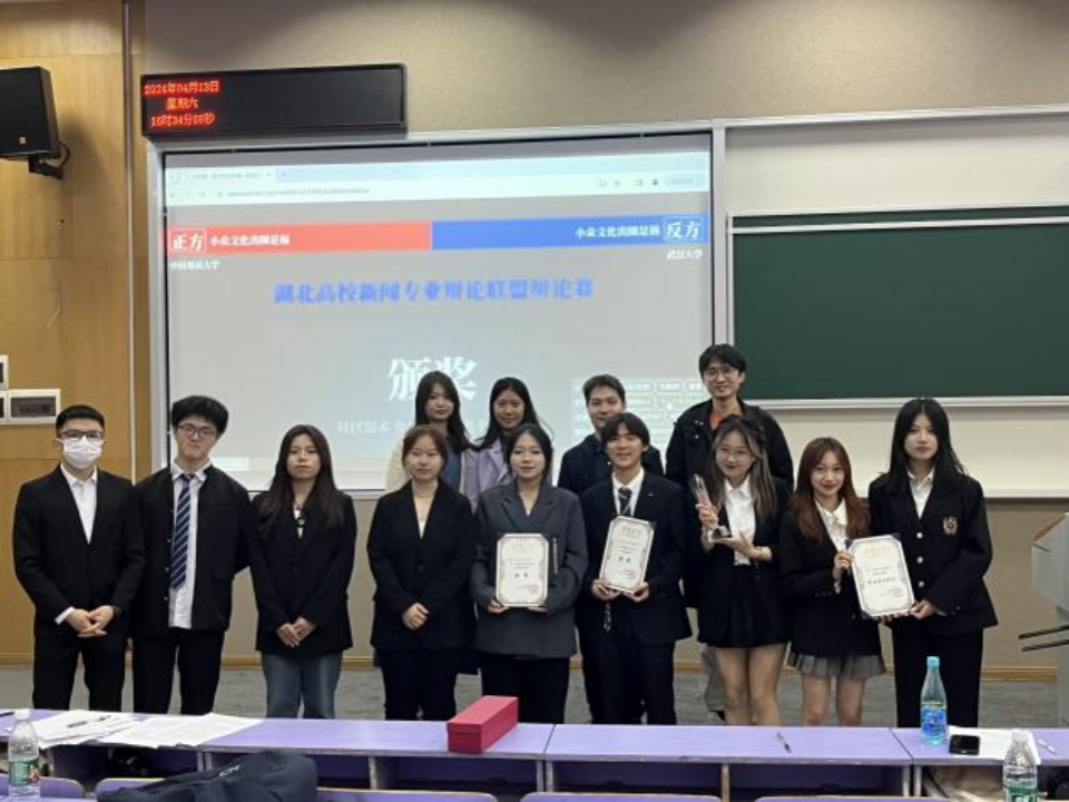4月13日下午,第十一届湖北高校新闻专业辩论联盟(简称“新辩盟”)辩论赛决赛于公司南望山校区西区教三楼110教室举行。本场比赛,正方402永利集团官网入口辩论队与反方武汉大学新闻与传播学院辩论队就“小众文化出圈是福是祸”这一辩题展开辩论,争夺冠军奖杯。