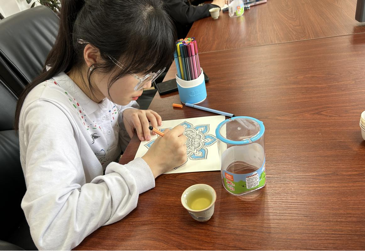 在快节奏的现代生活中,学生的心理健康日益受到重视,为了促进学生身心健康发展,响应《全面加强和改进新时代学生心理健康工作专项行动计划(2023-2025年)》的号召,学院艺心辅导员工作室在4月25日下午,于1209会议室举办了“茶”说心语系列活动的第二讲之彩绘曼陀罗。