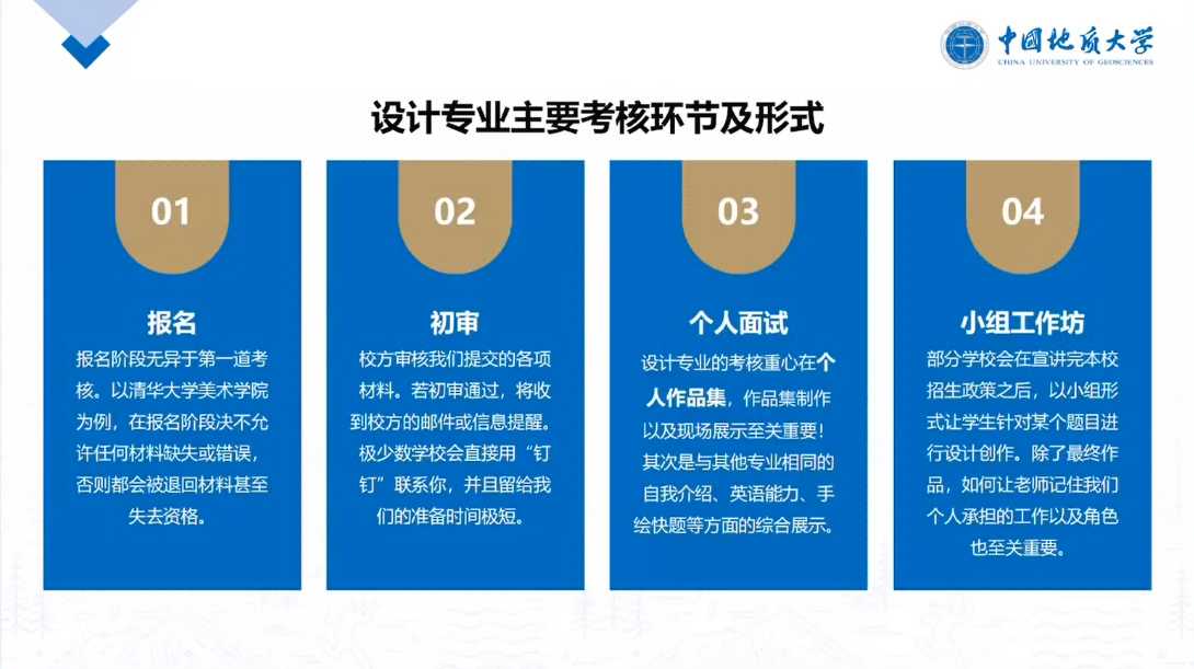 首先,数字媒体艺术专业的刘淼聪同学从保研需要关注的时间节点和学校考核形式两个方面为同学们展开分享,他首先详细介绍了保研的各个环节和重要的时间节点,提醒同学们要在每个时间节点前完成相关的手续;接下来着重分享了设计学专业主要的考核内容和自己的一些备考经验。