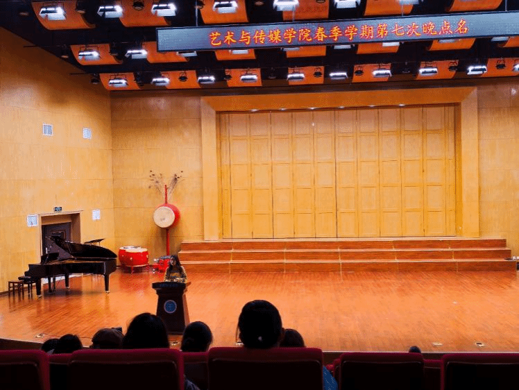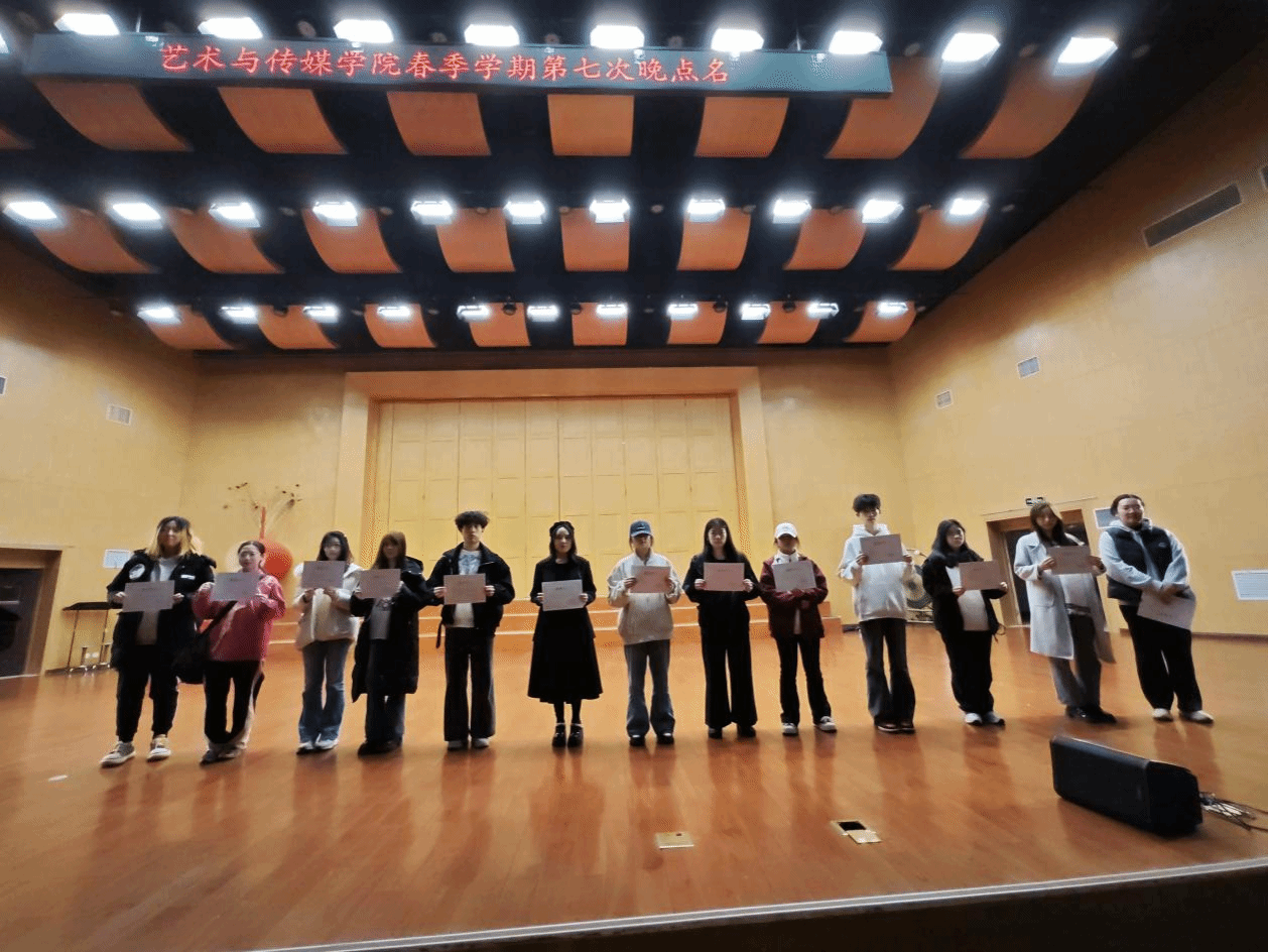 2025 年 3 月 31 日晚,402永利集团官网入口在音乐厅组织开展春季学期第七次晚点名活动。本次活动围绕保研经验分享、早操荣誉表彰、日常管理规范三方面内容展开,学工组辅导员曾戈晖、兼职辅导员吴健以及全体2024级本科生参加本次活动,视觉传达设计专业 2021 级优秀学生李怡雯受邀担任分享嘉宾。