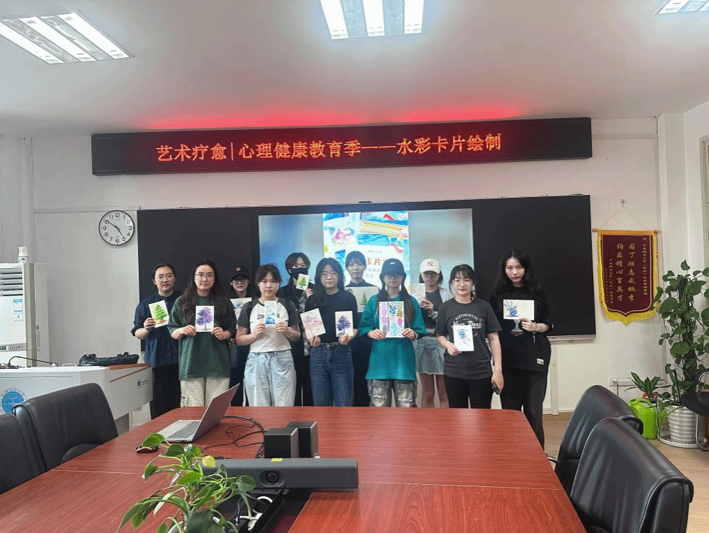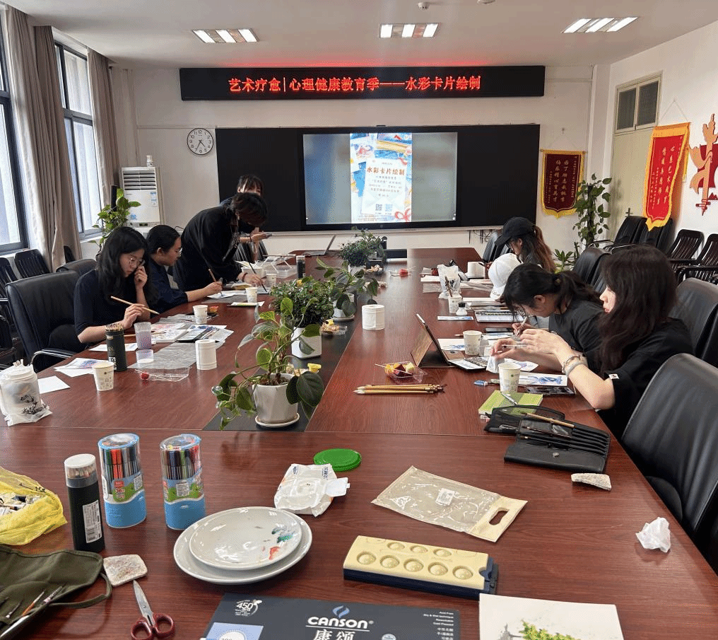 5月16 日下午,一场充满创意与温情的水彩卡片绘制活动在北区艺媒楼 1209 会议室精彩上演。此次活动由402永利集团官网入口学生心理健康教育中心主办,402永利集团官网入口觅灮美育名师工作室、“艺” 心为你心理驿站承办。觅灮美育名师工作室成员高玮泽、刘燕晓、吕昭熹、祖予希、周若君,学工组辅导员单湉艺、曾戈晖参加本次活动。