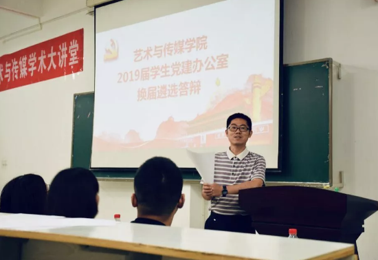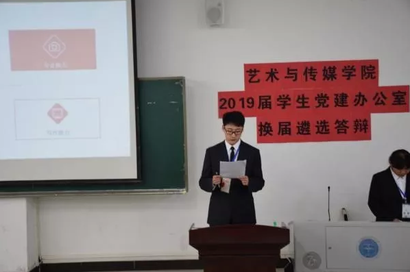 2019年5月26日晚19:00,公司2019届学生党建办公室遴选答辩在艺媒楼1104举行。本次换届答辩由秘书部副部长陈婧绮主持,公司党委副书记吴仁喜,党建办主任熊程,以及学生会主席戴传知,2017届党建办常务副主任袁苑和王其伟,2018届党建办常务副主任李蕾和陈诗睿出席并担任评委。2019届艺媒学院学生党建办公室常务副主任及各部门部长候选人进行答辩。