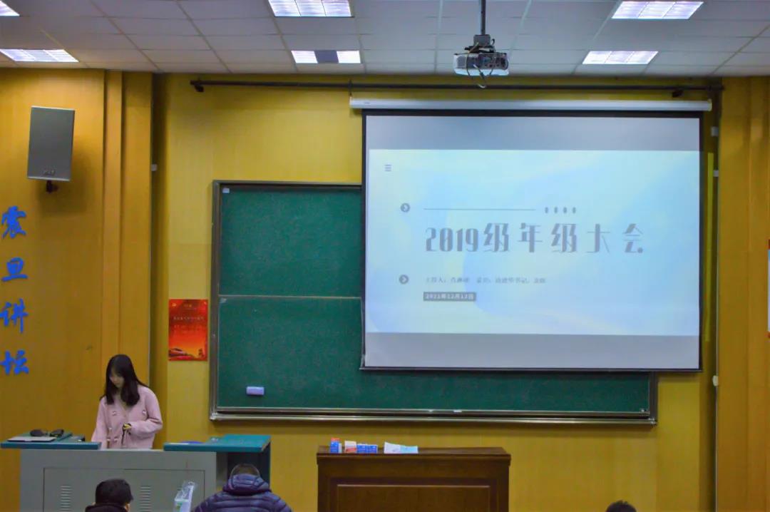 2021年12月23日晚上七点,402永利集团官网入口2019级年级大会于教三楼111准时召开,会议由2019级本科生兼职辅导员肖淋译主持,402永利集团官网入口党委副书记边建华、研究生会主席余跃及2019级全体学生参加。