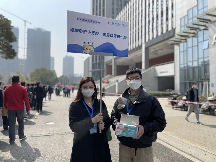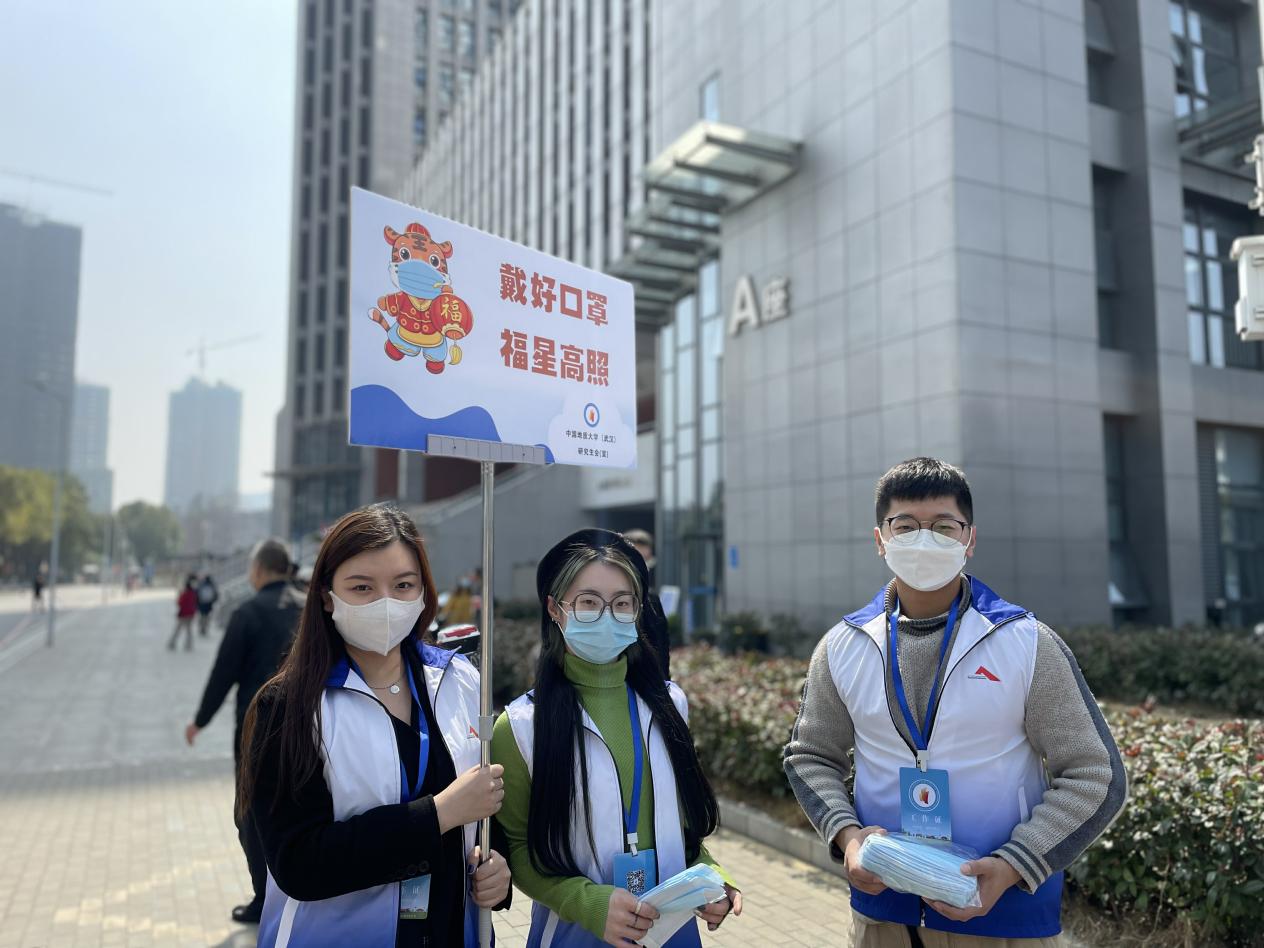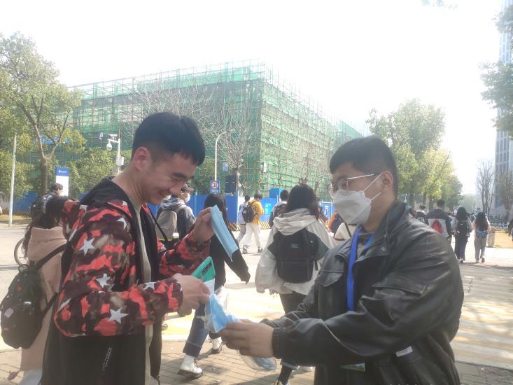 公司志愿者抓住上下课高峰期在东区综合楼、化石林等处积极进行知识宣传。高举“戴好口罩 福星高照”、“健康防护千万家 戴好口罩第一条”等指示牌,不断为来往师生传达疫情防控常识。同时贴心地为口罩遗失、破损或佩戴时间过长的师生提供免费口罩,以此来呼吁校内师生在公共场合做好防护。